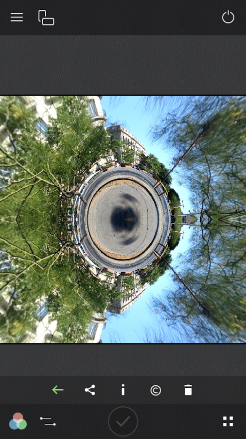 - Create little planet photos with the Stereographic filters, or use the preset tinyplanet or Little Planet mode.