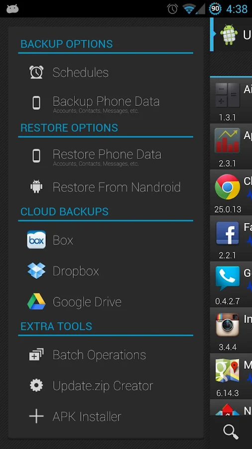 - Backup/Restore text messages, bookmarks, accounts, etc.