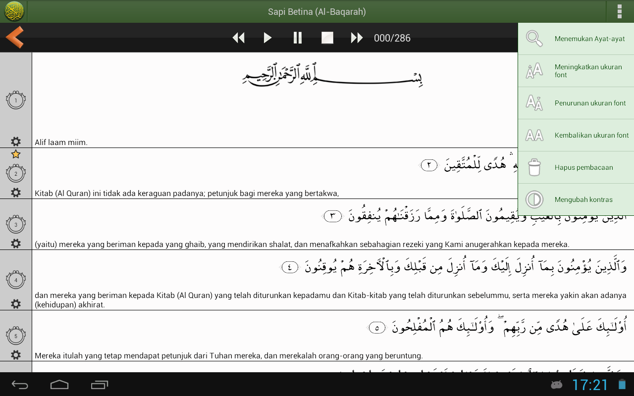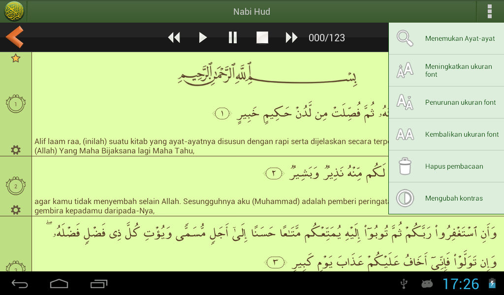 Read the Quran in Bahasa Indonesia in portrait or landscape modes.
