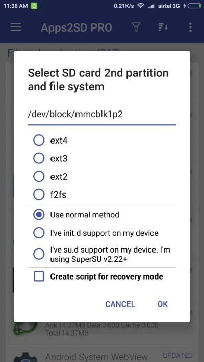 Apps2SD Prerequisites