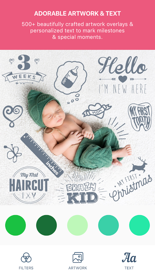 650+ beautifully crafted artwork overlays to mark your little ones exciting milestones & special moments.