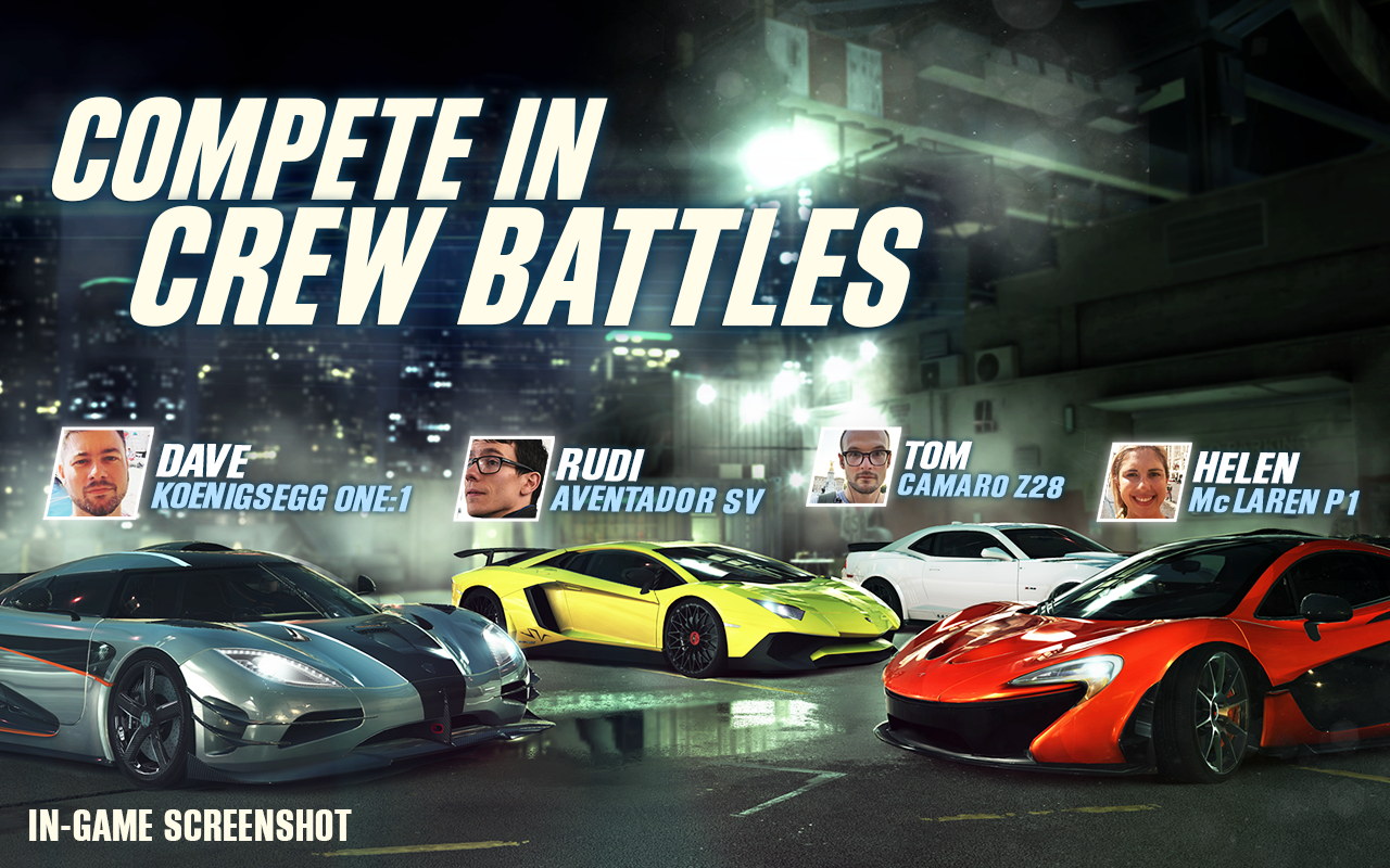 CSR 2 lets you race against real players across the world, in realtime. Choose worthy opponents from the lobby or accept live challenges – and raise the stakes by placing bets. Team up with friends to form a crew, and together fight for ranks in the leaderboard and superexclusive vehicles.