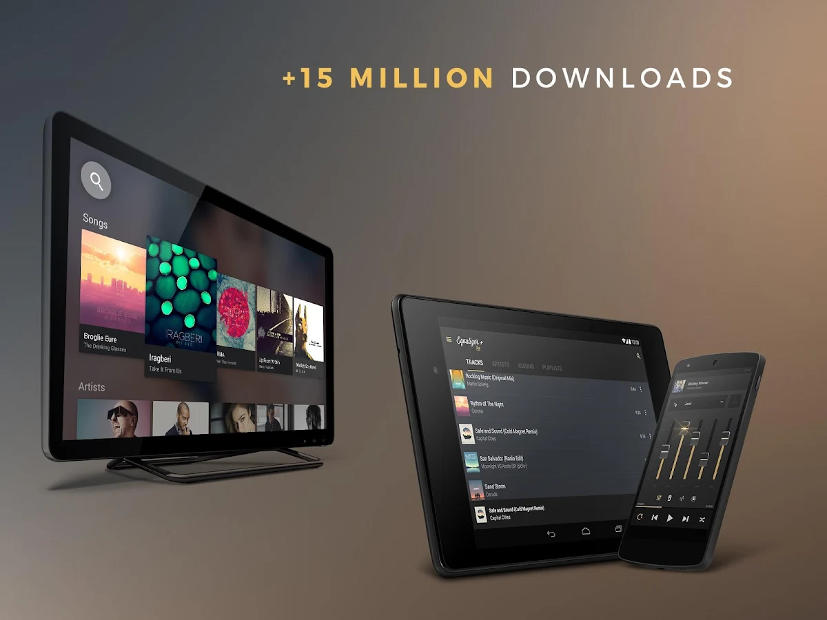 - 5 bands equalizer (from low bass to highs to enhance the quality of your songs)
