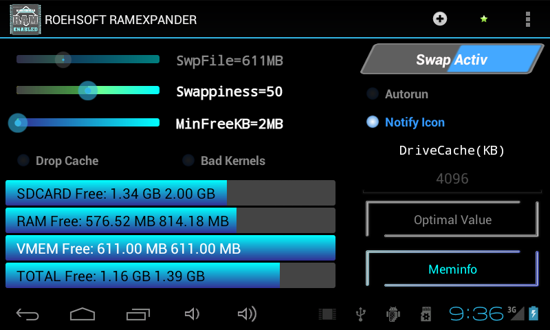 - Free SD card memory as a RAM use (SWAP RAM / SWAP MEMORY)