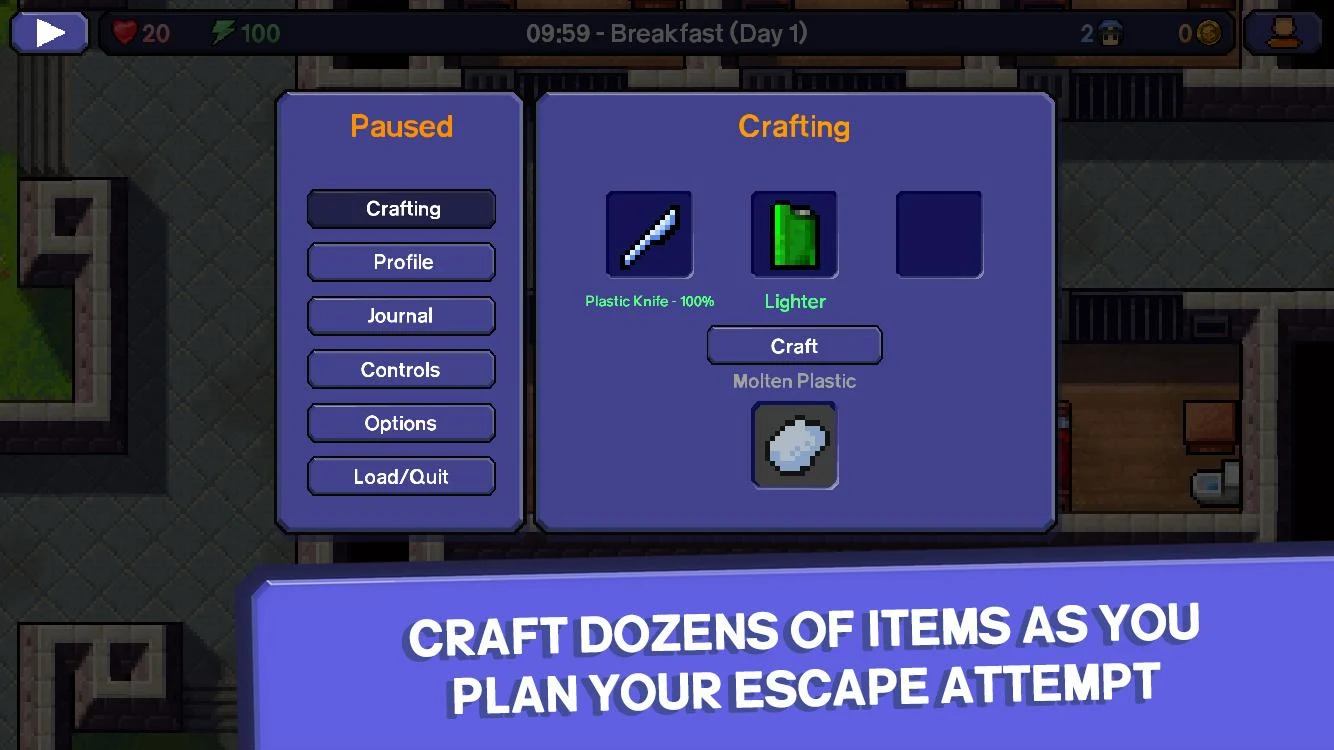 The Escapists is a unique prison sandbox experience with lots of items to craft and combine in your daring quest for freedom. Life in prison will keep you on your toes with the strict rules that you’ll have to break. The guards are out to stop any escape attempts, so you’ll have to avoid suspicious behaviour by attending roll calls, working a prison job and hiding your stolen craftables.