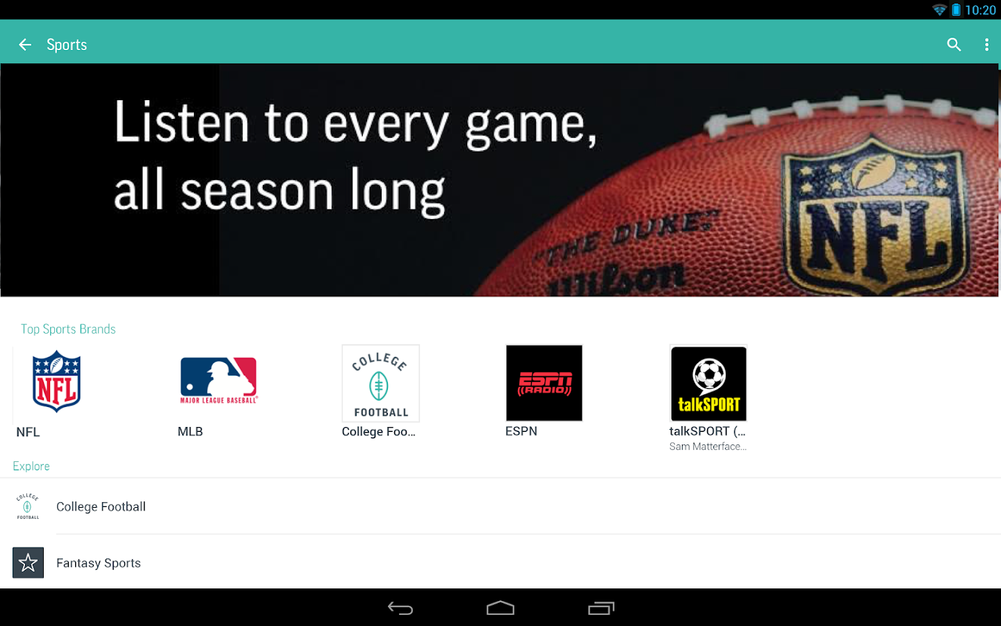Listen to the world’s largest collection of radio stations on your phone or tablet, absolutely free. TuneIn has all of the best sports, news, music and talk radio as well as live events and top podcasts. Stream over 100,000 real radio stations, playing live from around the world. TuneIn Radio Pro is display ad free and lets you record what you are listening to. Follow college football leading up to the playoffs with live playbyplay coverage from 85 Division 1 teams including topranked Alabama, Oregon, Florida State, Auburn, Ohio State, USC, Texas A&M, and other powerhouse teams from the ACC, Big 12, Big Ten, Pac 12, & SEC. TuneIn lets you listen to your favorite teams right on your smartphone or tablet.