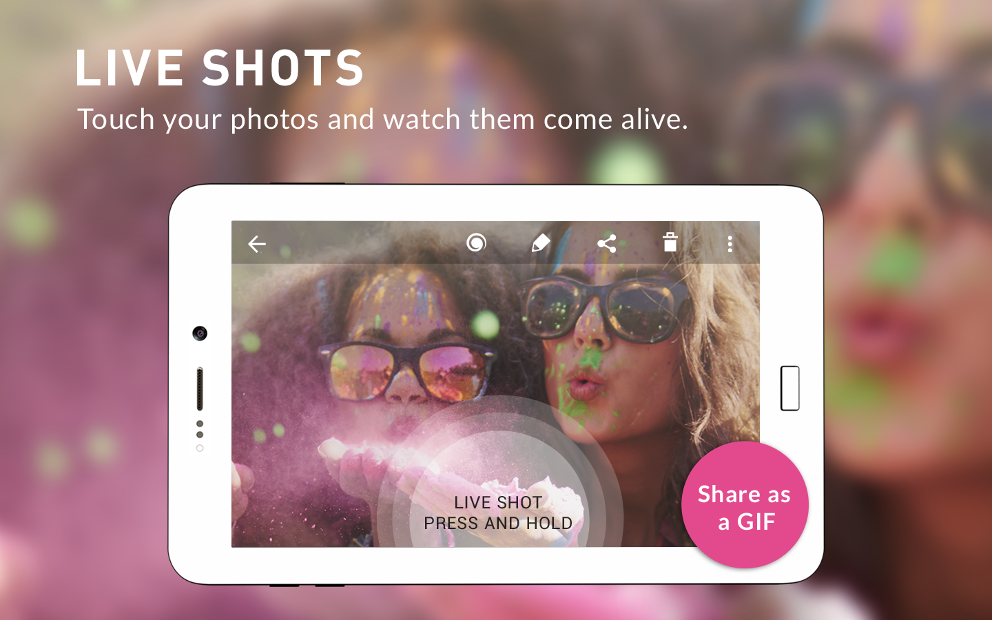 View your photos come to life with a simple touch. Turn it into a GIF or turn back the clock to 3 seconds before the shot and save the most beautiful moments as a separate photo.