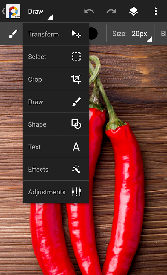 - Manfaatkan kamera perangkat Anda untuk mengambil foto (juga tersedia sebagai Sony Xperia Plugin kamera), menerapkan real-time efek kamera filter, dan memasukkan mereka dalam proyek gambar Anda.